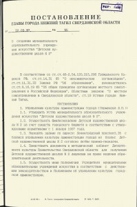 Открыта детская художественная школа № 2 в Дзержинском районе Постановление Главы города Нижний Тагил от 12 марта 1997 года № 95 (НТГИА. Ф.560. Оп.1. Д.205. Лл.149-150)  Постановление Главы города Нижний Тагил от 12 марта 1997 года № 95 (НТГИА. Ф.560. Оп.1. Д.205. Л.149) Постановление Главы города Нижний Тагил от 12 марта 1997 года № 95 (НТГИА. Ф.560. Оп.1. Д.205. Л.150)