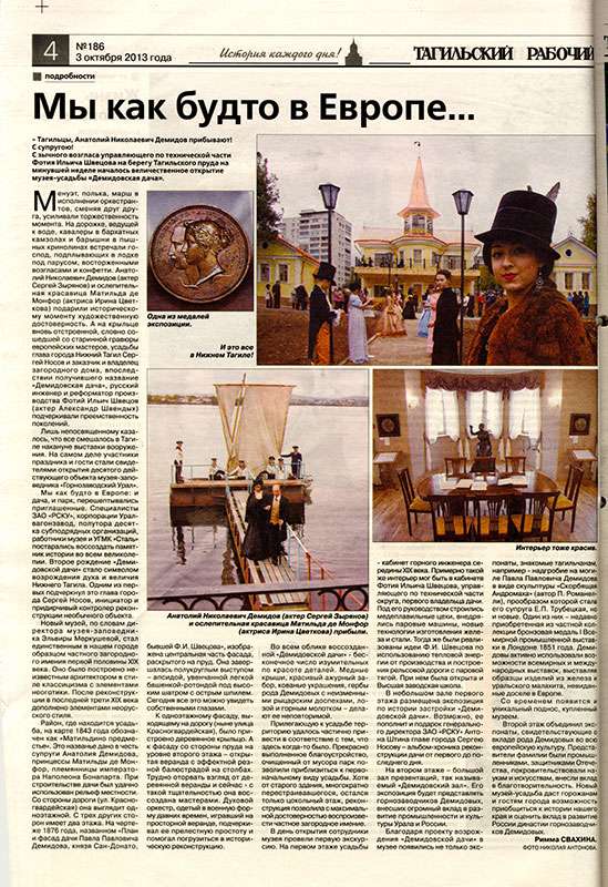 Газета "Тагильский рабочий".- 2013 г. - 3 октября (№ 186). - С. 4.